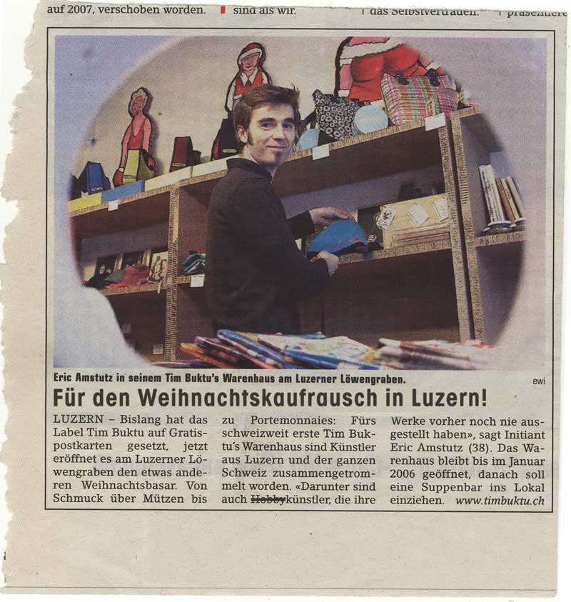 Am 6. Januar 1996 erschien in der LNN ein Artikel von Christoph Fellmann über Tim Buktu mit der Überschrift "Eine neue Werbe-Idee versucht, Luzern zu erobern"!